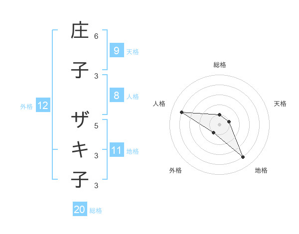 庄子 ザキ子さんの総格は20画の1点!