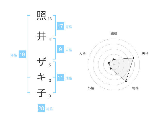 照井 ザキ子さんを姓名の画数から五運を鑑定