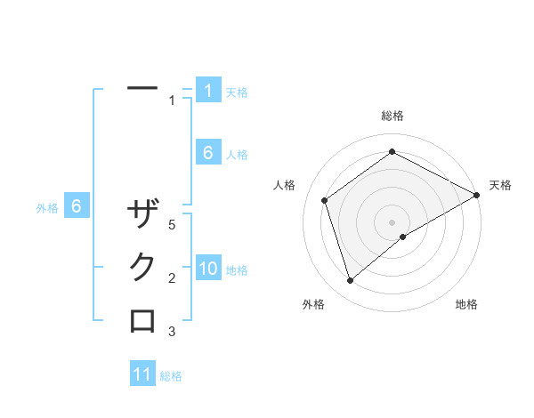 一 ザクロさんの総格は11画の4点!