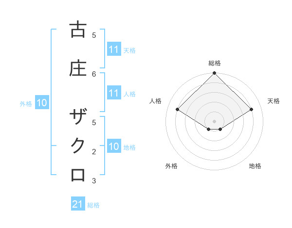古庄 ザクロさんを姓名の画数から五運を鑑定
