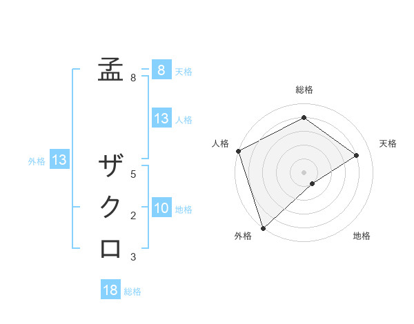 孟 ザクロさんの外格は13画の5点