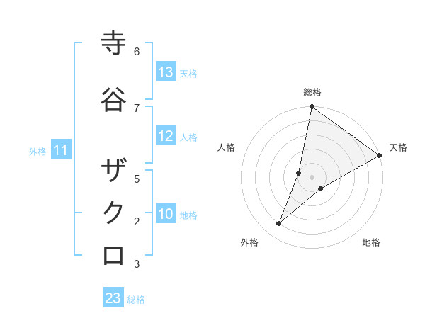 寺谷 ザクロさんを姓名の画数から五運を鑑定