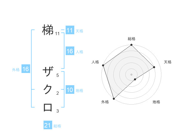 梯 ザクロさんを姓名の画数から五運を鑑定