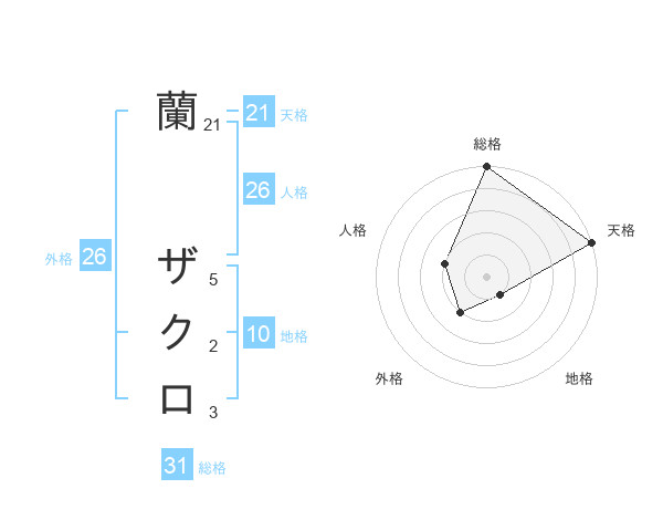 蘭 ザクロさんを姓名の画数から五運を鑑定