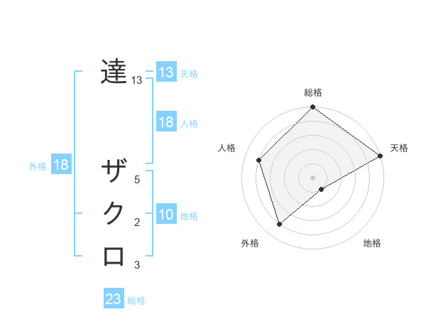 達 ザクロさんの外格は18画の4点!