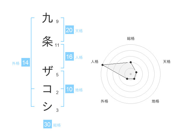 九条 ザコシさんを姓名の画数から五運を鑑定