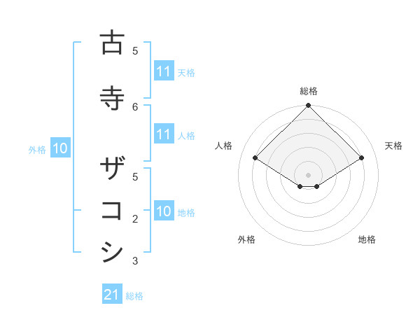 古寺 ザコシさんを姓名の画数から五運を鑑定