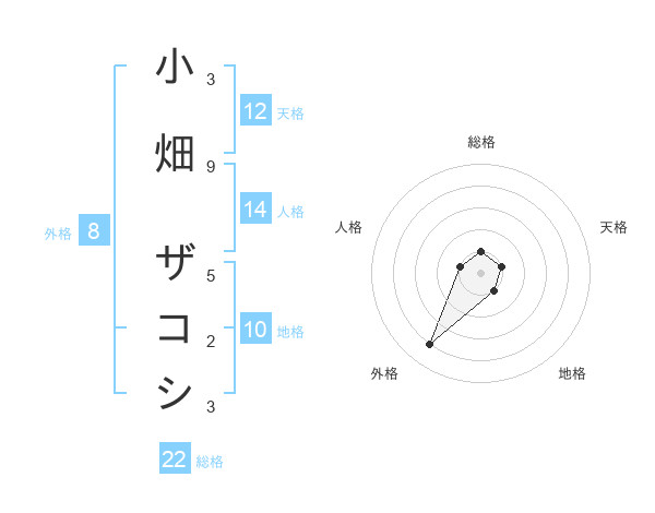 小畑 ザコシさんを姓名の画数から五運を鑑定