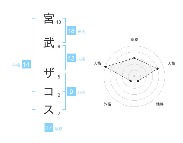 宮武 ザコスさんを姓名の画数から五運を鑑定