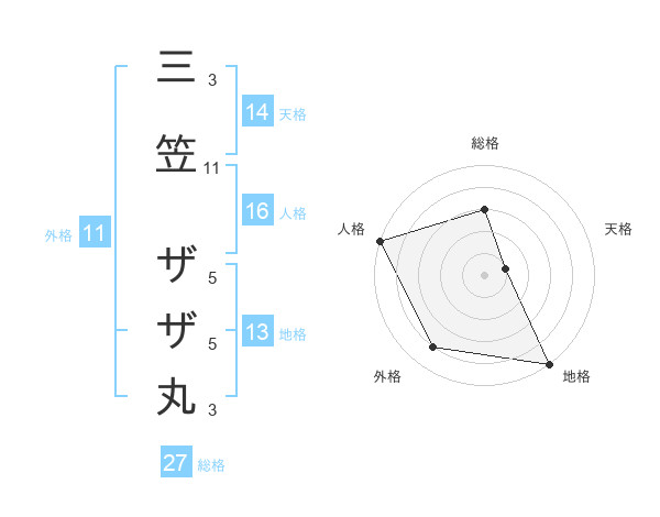三笠 ザザ丸さんを姓名の画数から五運を鑑定