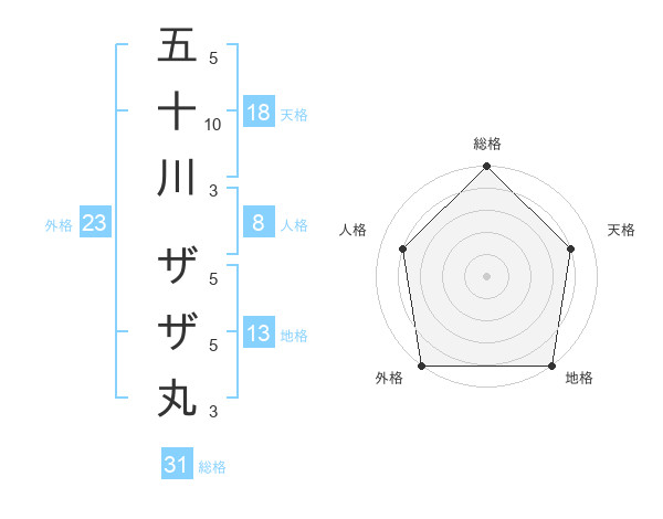 五十川 ザザ丸さんの外格は23画の5点!