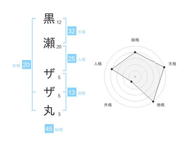 黒瀬 ザザ丸さんの総格は45画の4点!