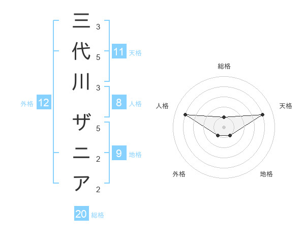三代川 ザニアさんを姓名の画数から五運を鑑定