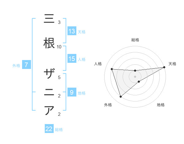 三根 ザニアさんの総格は22画の1点!