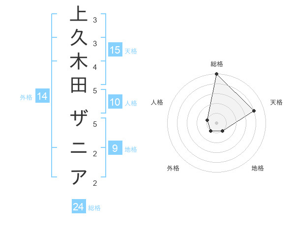 上久木田 ザニアさんの総格は24画の5点!