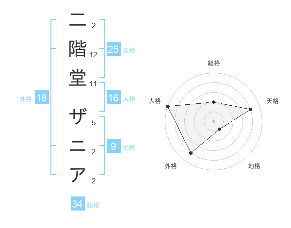 二階堂 ザニアさんを姓名の画数から五運を鑑定