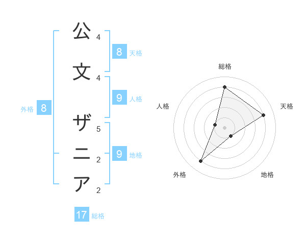 公文 ザニアさんを姓名の画数から五運を鑑定