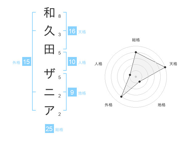 和久田 ザニアさんの天格は16画の5点!