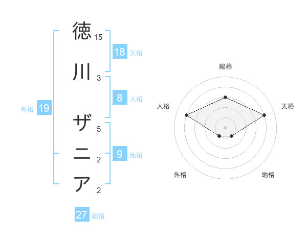 徳川 ザニアさんを姓名の画数から五運を鑑定