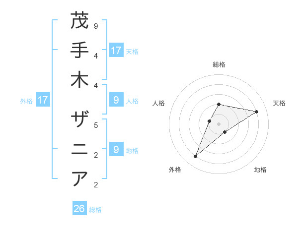 茂手木 ザニアさんを姓名の画数から五運を鑑定