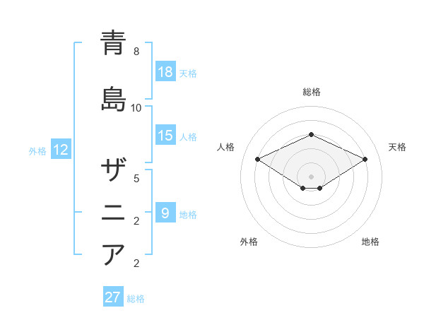 青島 ザニアさんを姓名の画数から五運を鑑定