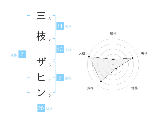 三枝 ザヒンさんの総格は20画の1点