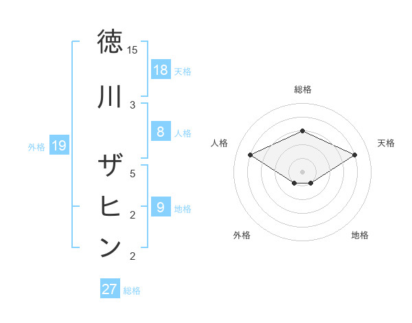 徳川 ザヒンさんの天格は18画の4点!