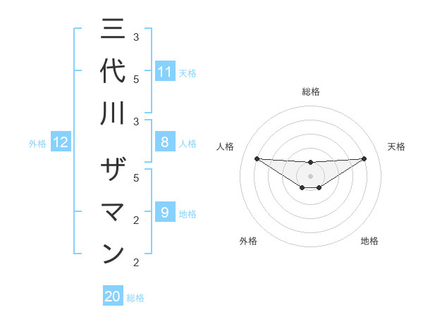 三代川 ザマンさんを姓名の画数から五運を鑑定