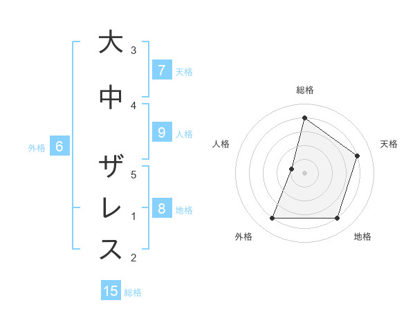 大中 ザレスさんの総格は15画の4点!