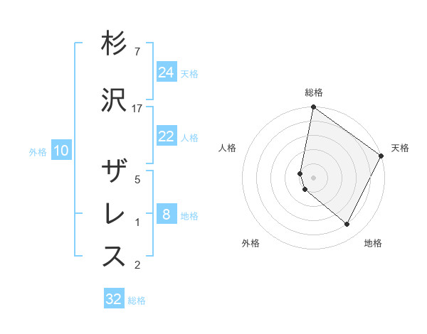 杉沢 ザレスさんの総格は32画の5点!