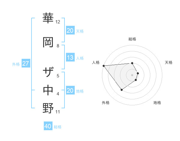 華岡 ザ中野さんの総格は40画の2点!
