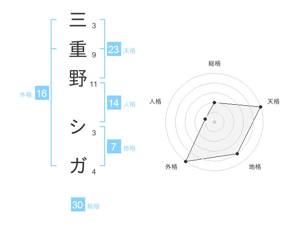 三重野 シガさんの天格は23画の5点!