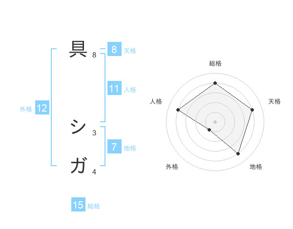 具 シガさんの総格は15画の4点!