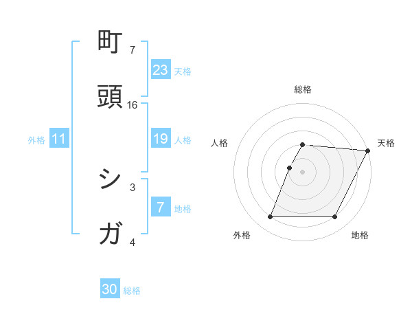 町頭 シガさんの天格は23画の5点!