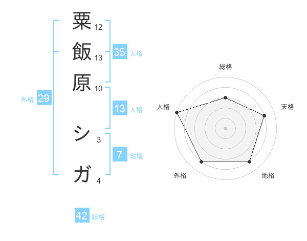 粟飯原 シガさんの総格は42画の3点!