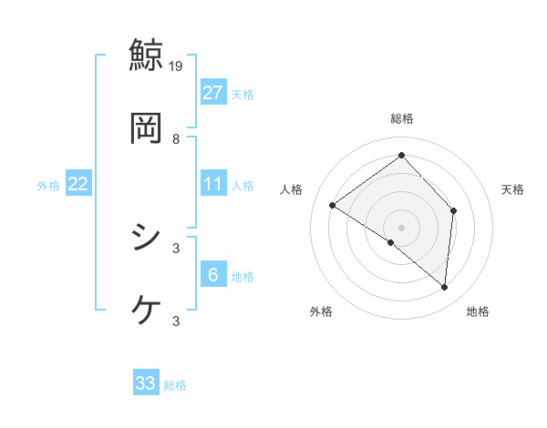 鯨岡 シケさんを姓名の画数から五運を鑑定