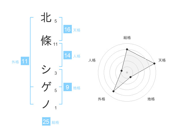 北條 シゲノさんの天格は16画の5点!
