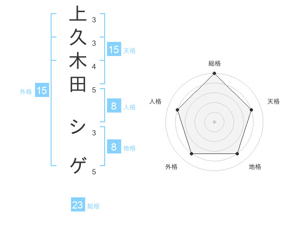 上久木田 シゲさんの天格は15画の4点!