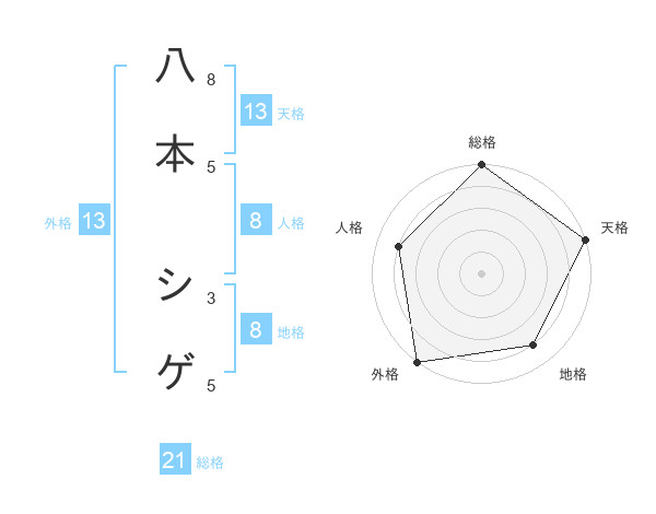 八本 シゲさんの天格は13画の5点!