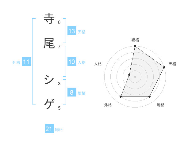寺尾 シゲさんの天格は13画の5点!