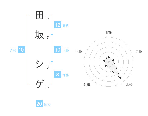 田坂 シゲさんの総格は20画の1点!