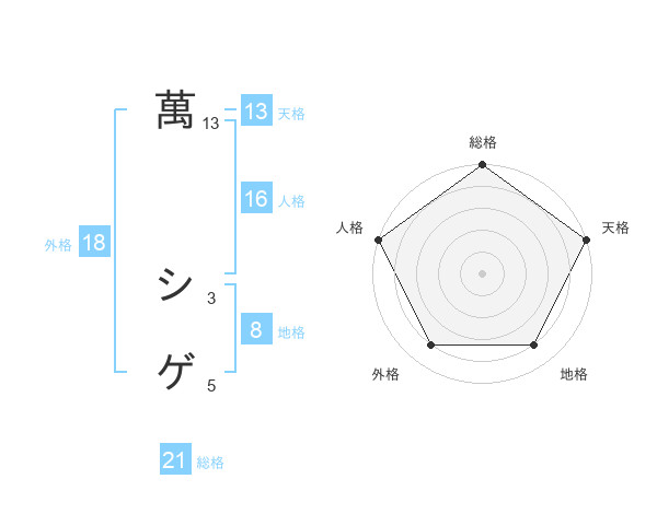 萬 シゲさんの総格は21画の5点!