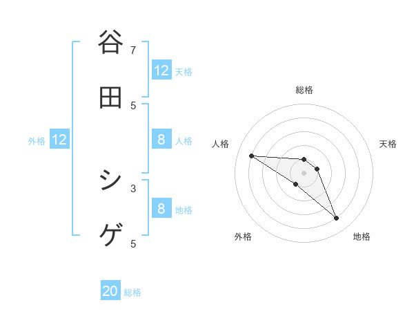 谷田 シゲさんを姓名の画数から五運を鑑定