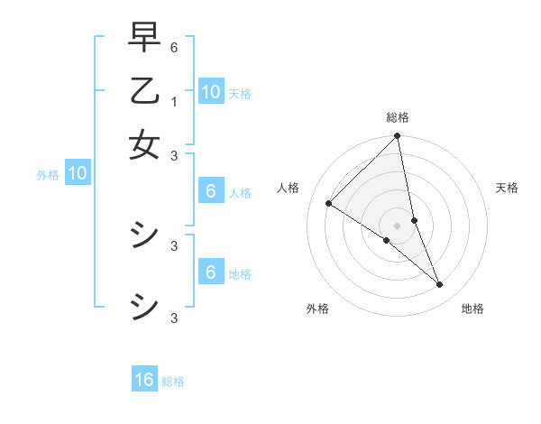 早乙女 シシさんを姓名の画数から五運を鑑定