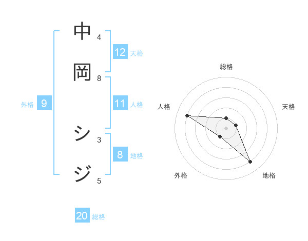 中岡 シジさんの天格は12画の1点!