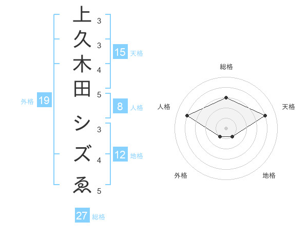 上久木田 シズゑさんを姓名の画数から五運を鑑定