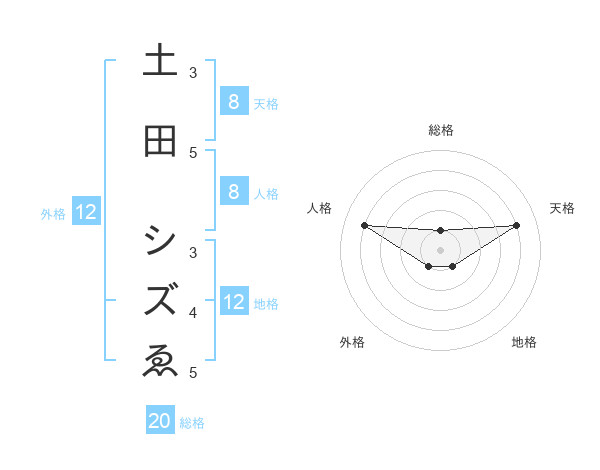 土田 シズゑさんを姓名の画数から五運を鑑定