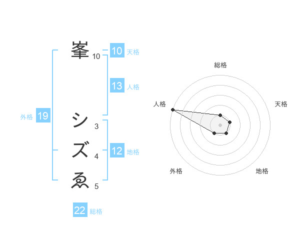 峯 シズゑさんの外格は19画の1点!