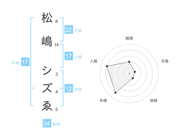 松嶋 シズゑさんを姓名の画数から五運を鑑定