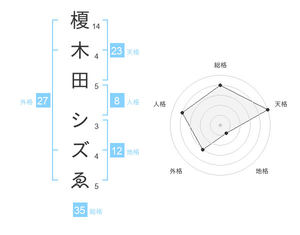 榎木田 シズゑさんを姓名の画数から五運を鑑定